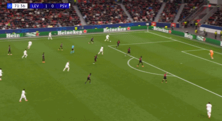 第72分钟,蒂尔分球,萨伊瓦里兜射远端破门扳平比分,埃因霍温1-1